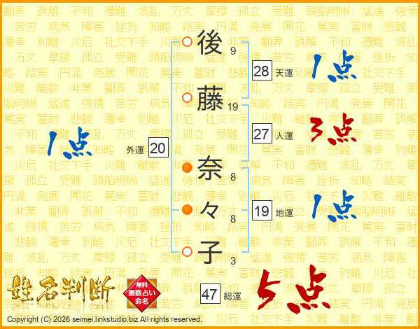 後藤奈々子さんの総運は47画の5点!