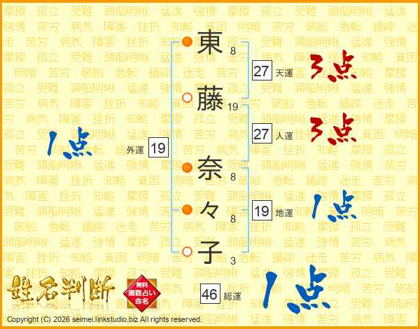 東藤奈々子さんの総運は46画の1点!