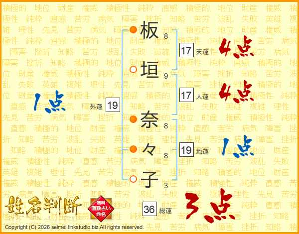 板垣奈々子さんの人運は17画の4点!
