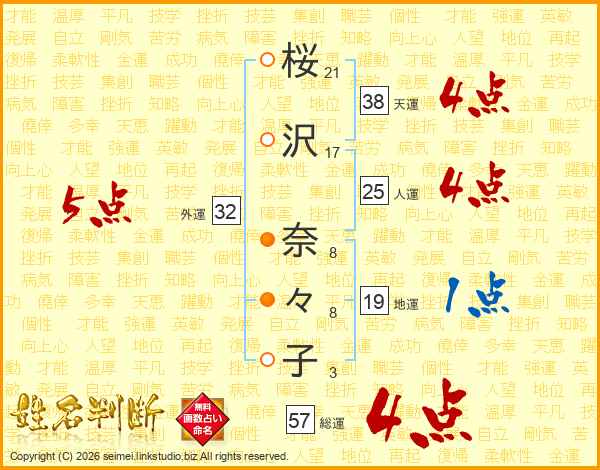 桜沢奈々子さんの外運は32画の5点!