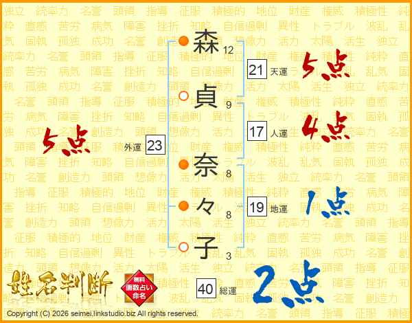 森貞奈々子さんの総運は40画の2点!