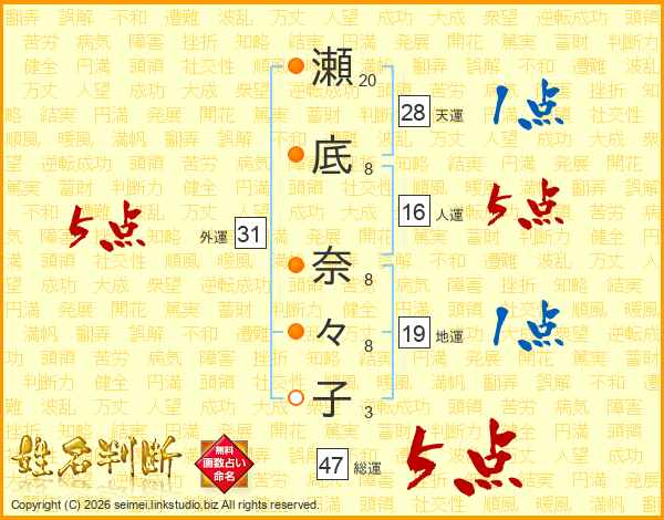 瀬底奈々子さんの総運は47画の5点!