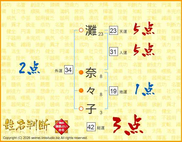 灘(23画) 奈(8画)々(8画)子(3画)