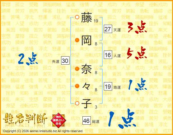 藤岡奈々子さんの総運は46画の1点!