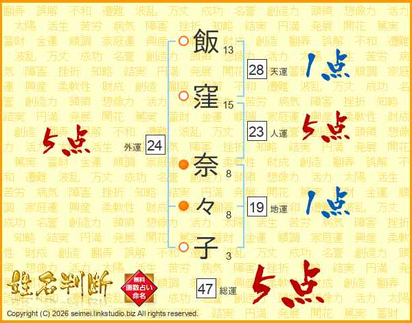 飯窪奈々子さんの総運は47画の5点!