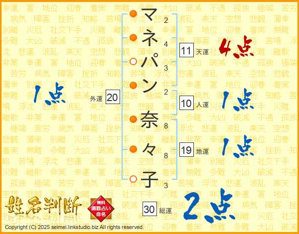 マネパン奈々子さんの総運は30画の2点