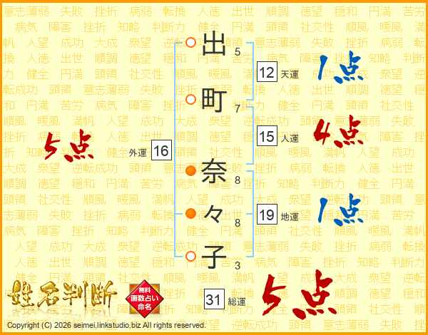 出町奈々子さんの総運は31画の5点!