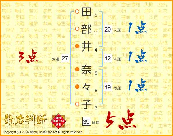 田部井奈々子さんの総運は39画の5点!