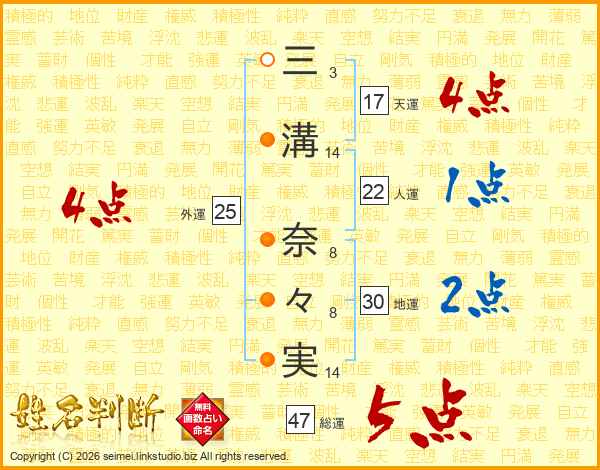 三溝奈々実さんの総運は47画の5点!