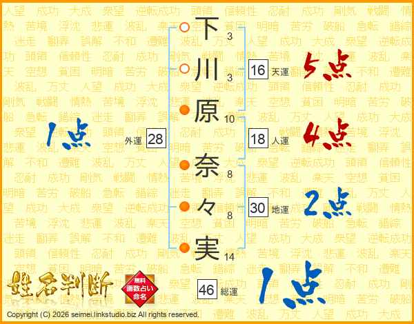 下川原奈々実さんの総運は46画の1点!