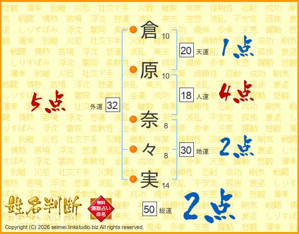 倉原奈々実さんの外運は32画の5点!