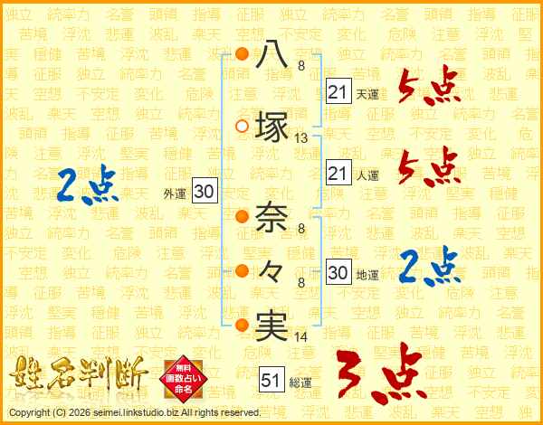 八塚奈々実さんの天運は21画の5点!
