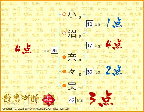 小沼奈々実さんの人運は17画の4点!