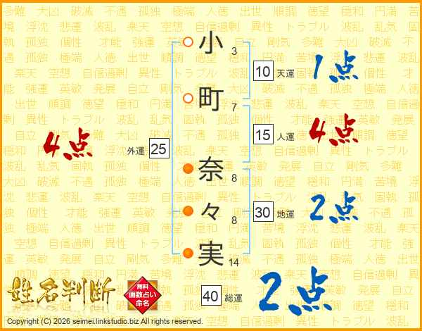 小町奈々実さんの総運は40画の2点!