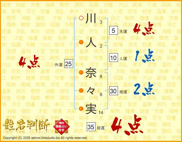 川人奈々実さんの総運は35画の4点!