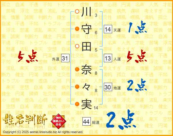 川守田奈々実さんの天運は14画の1点!