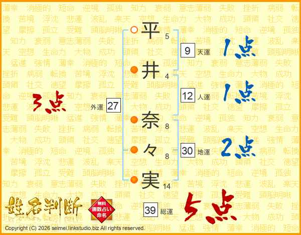 平井奈々実さんの総運は39画の5点!