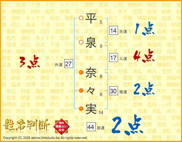 平泉奈々実さんの総運は44画の2点!