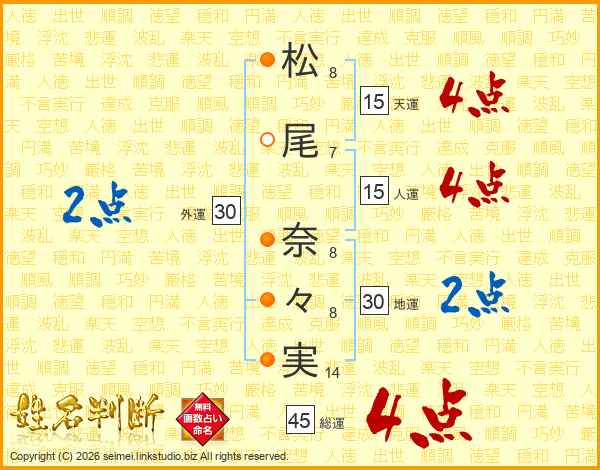 松尾奈々実さんの総運は45画の4点!