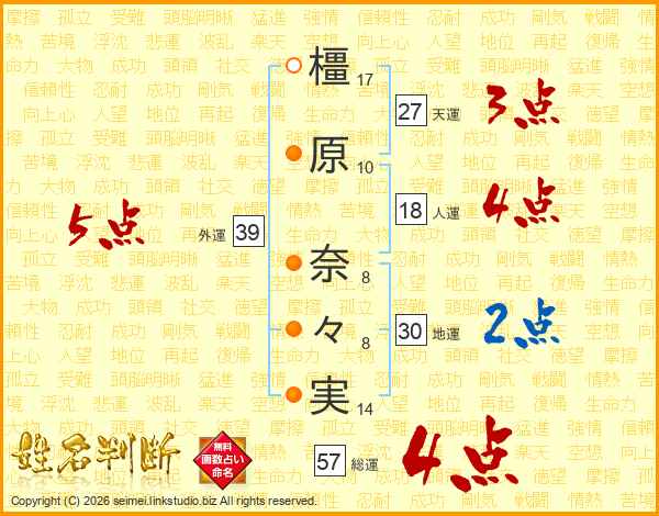 橿原奈々実さんの外運は39画の5点!