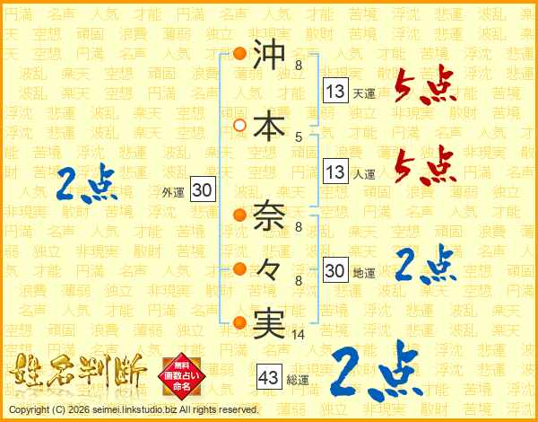 沖本奈々実さんの天運は13画の5点!