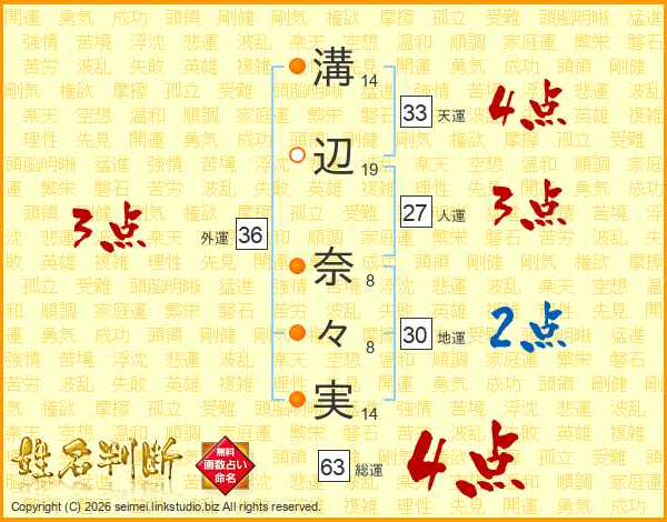 溝辺奈々実さんの総運は63画の4点!