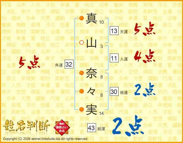真山奈々実さんの外運は32画の5点!