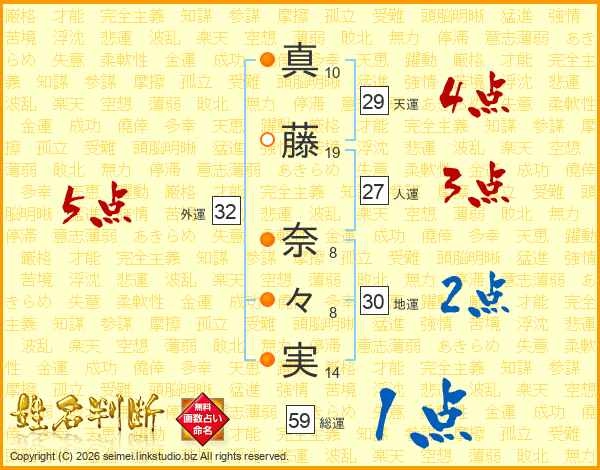 真藤奈々実さんの総運は59画の1点!