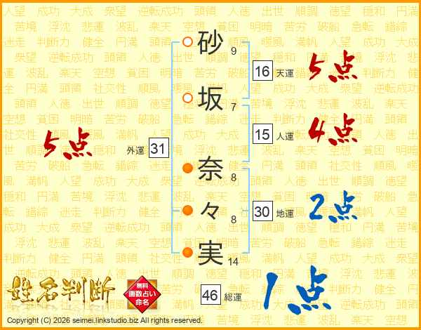 砂坂奈々実さんの総運は46画の1点!