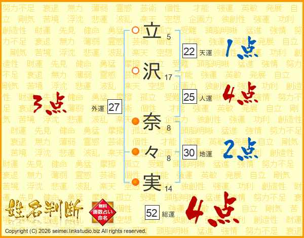 立(5画)沢(17画) 奈(8画)々(8画)実(14画)