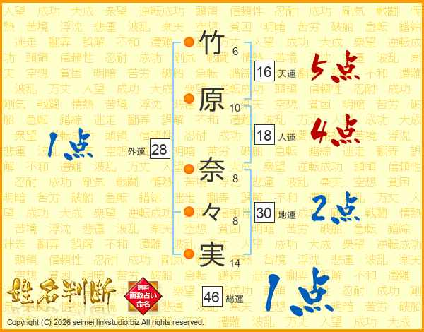 竹原奈々実さんの総運は46画の1点!