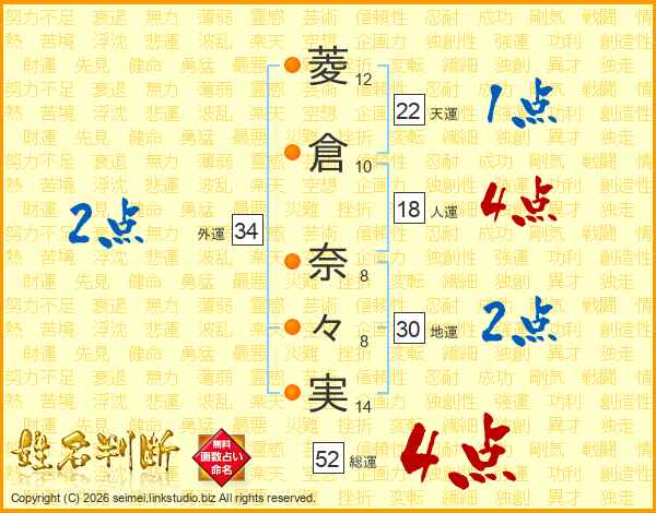 菱倉奈々実さんの総運は52画の4点!