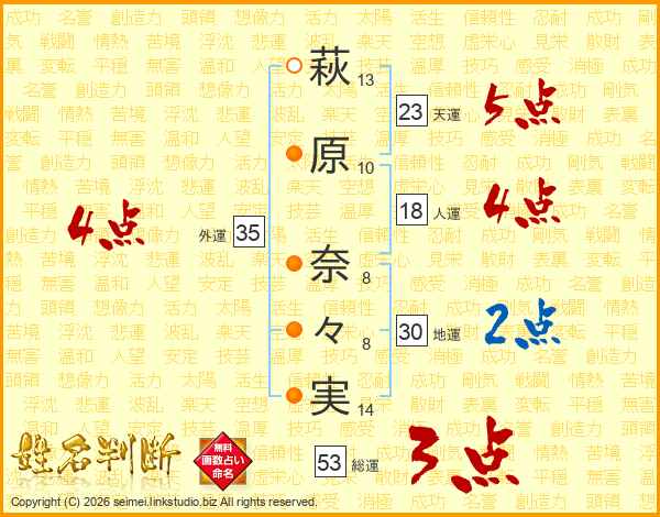 萩原奈々実さんの外運は35画の4点!