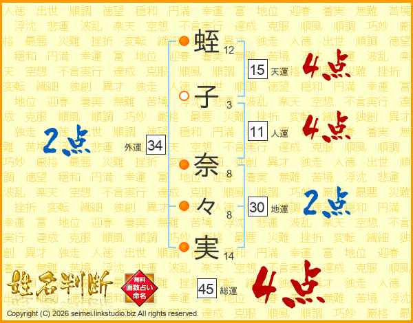 蛭子奈々実さんの総運は45画の4点!