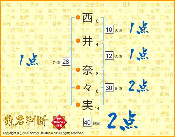 西井奈々実さんの地運は30画の2点!