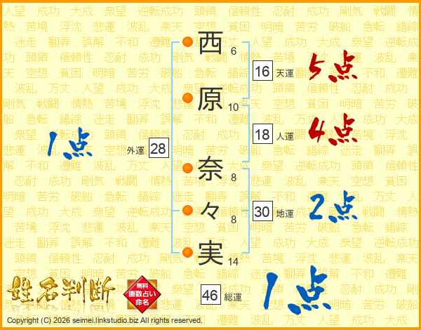 西原奈々実さんの総運は46画の1点!