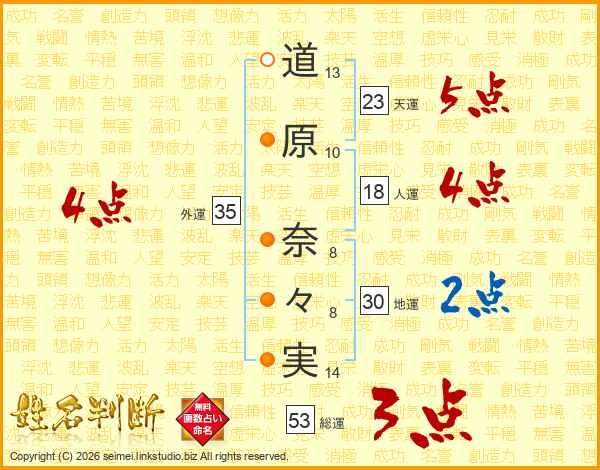 道原奈々実さんの総運は53画の3点!