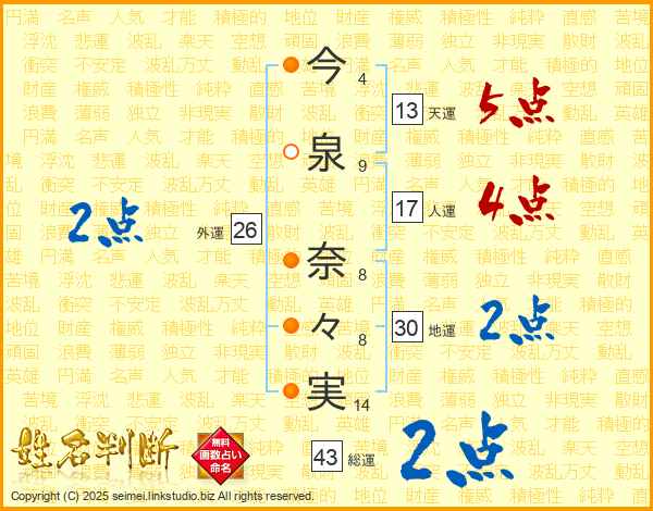 今泉奈々実さんの総運は43画の2点!