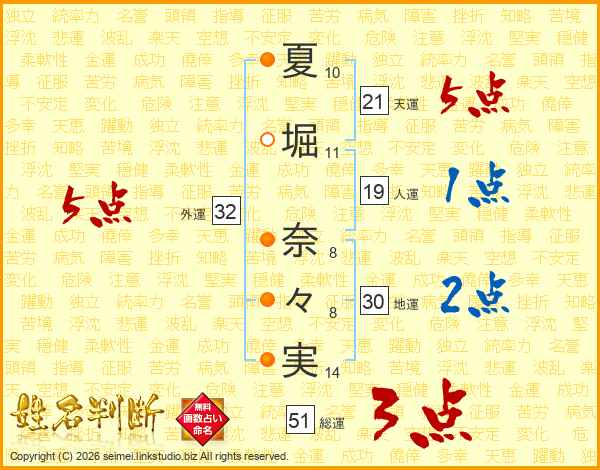 夏堀奈々実さんの外運は32画の5点!