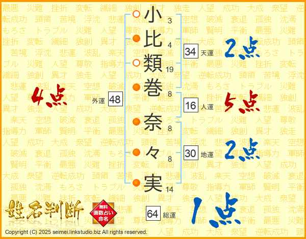 小比類巻奈々実さんの総運は64画の1点!