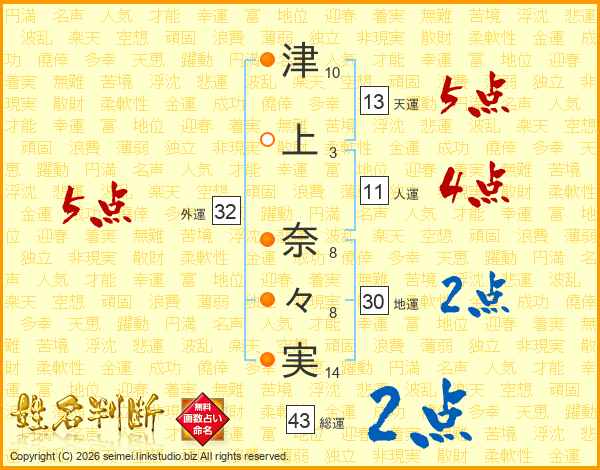 津上奈々実さんの外運は32画の5点!