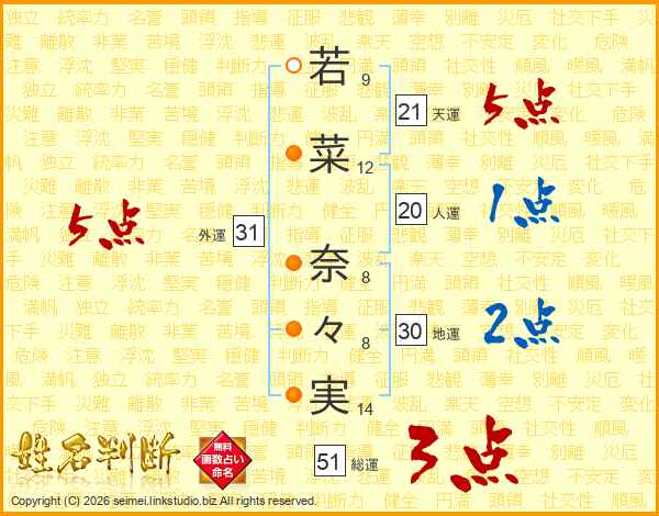 若菜奈々実さんの天運は21画の5点!