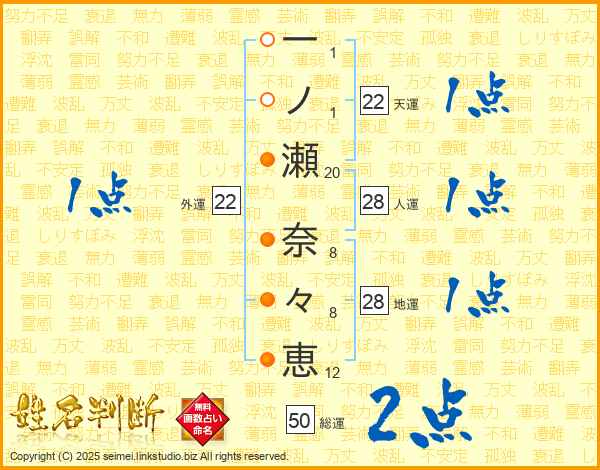 一ノ瀬奈々恵さんの総運は50画の2点!