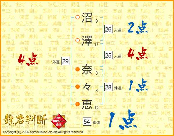 沼澤奈々恵さんの外運は29画の4点!