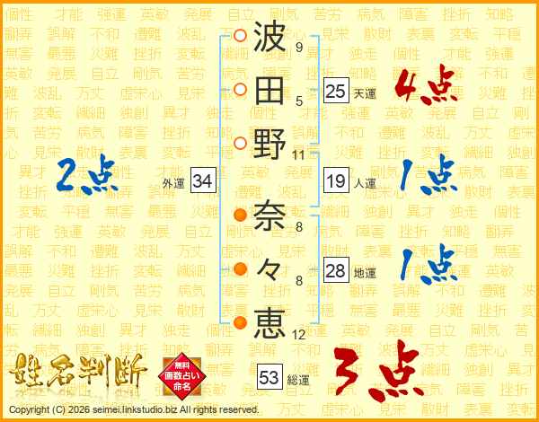 波田野奈々恵さんの総運は53画の3点!