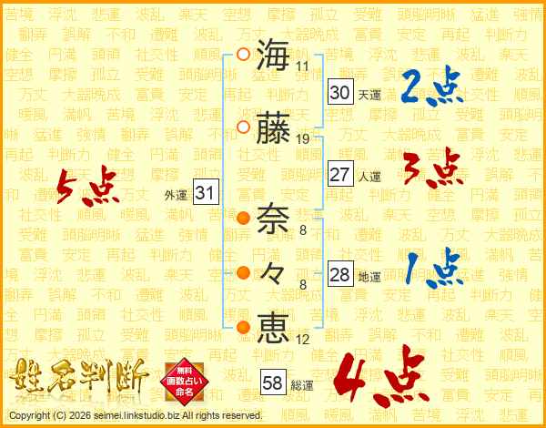 海藤奈々恵さんの総運は58画の4点!