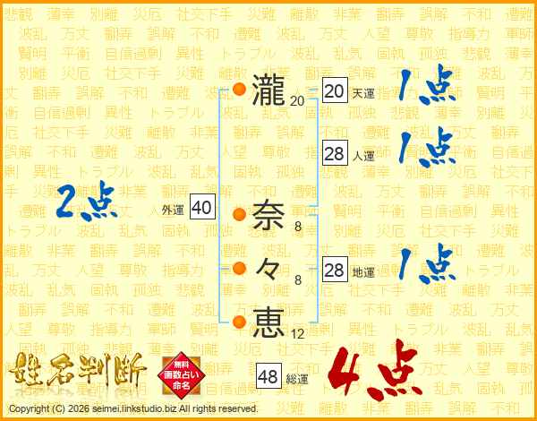 瀧奈々恵さんの総運は48画の4点!