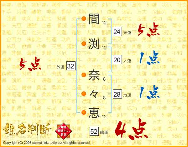 間渕奈々恵さんの総運は52画の4点!