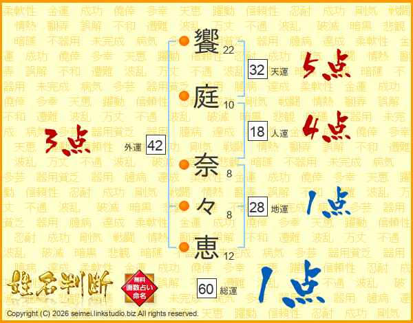 饗庭奈々恵さんの天運は32画の5点!