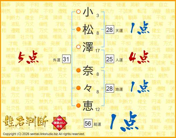 小松澤奈々恵さんの外運は31画の5点!